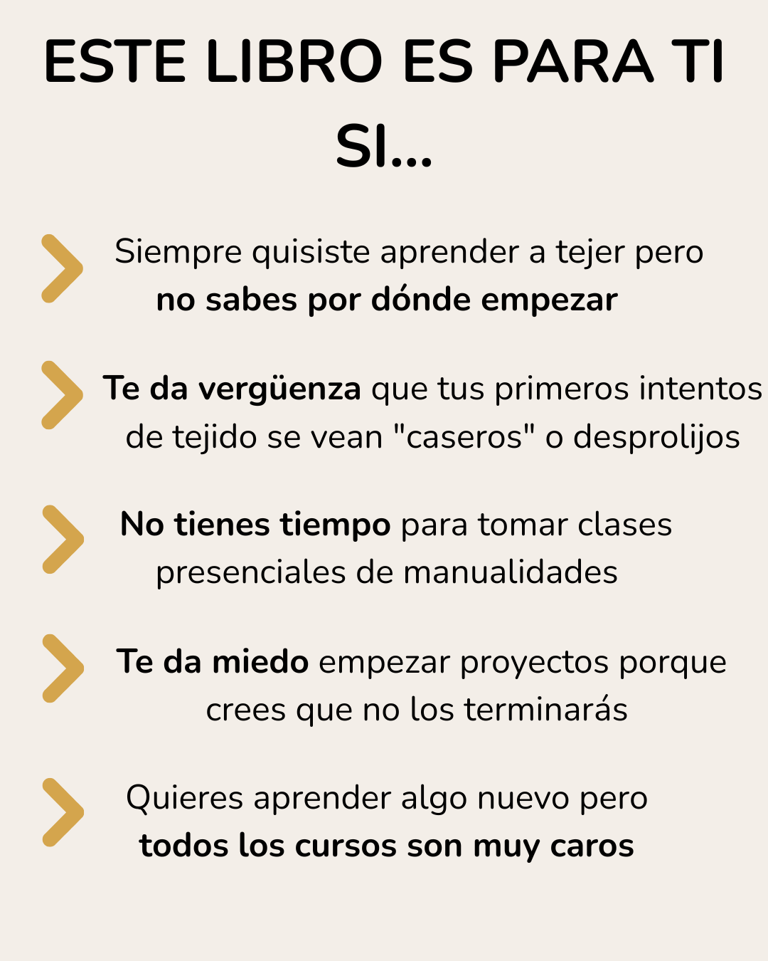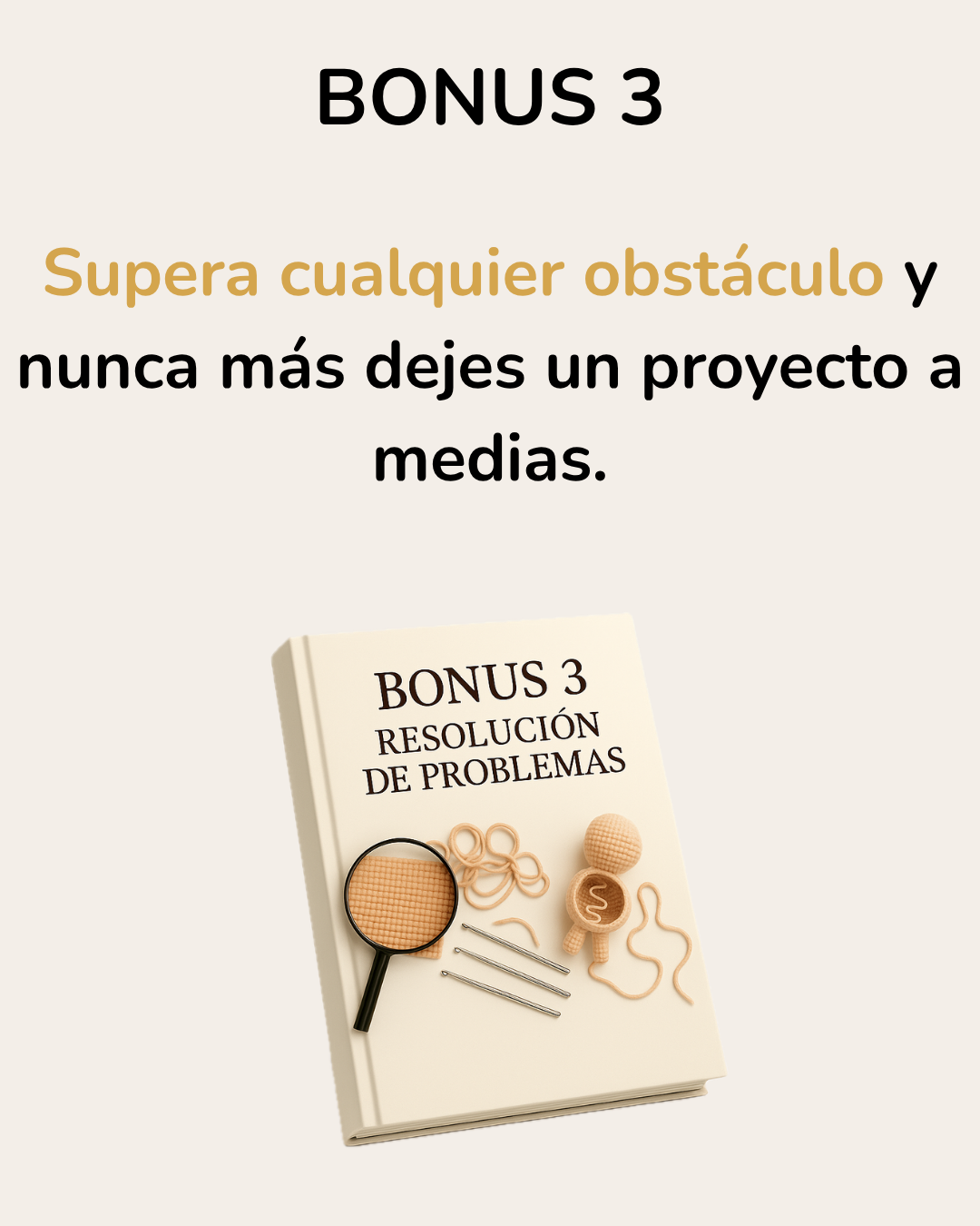 Porque este libro te ahorra tiempo y frustraciones. No tendrás que saltar de un tutorial a otro, intentando armar el rompecabezas. Aquí tienes todo en un solo lugar, organizado, probado y diseñado para que obtengas resultados reales. Además, este libro es como tener una maestra de crochet en casa, pero sin el té frío ni las visitas largas.